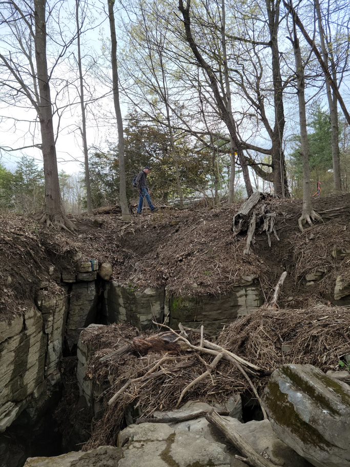 The Alan Traino Preserve is a karst preserve in Albany County, NY. There are two known caves on the preserve: Slingerlands Hellhole and George’s Surprise. These two insurgence caves contain an estimated 2,100 feet of passages and have a voice connection between them. The caves are part of the insurgence complex for the Chatter-Stone-Hole System.